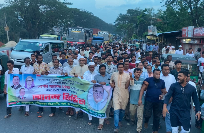 বিএনপি চেয়ারপারসন দেশে ফেরায় মীরসরাই বিএনপির আনন্দ মিছিল