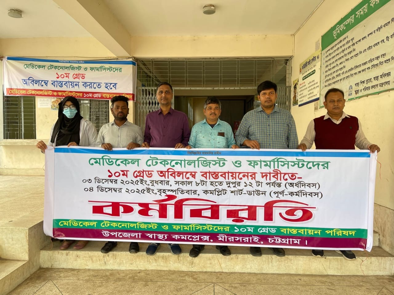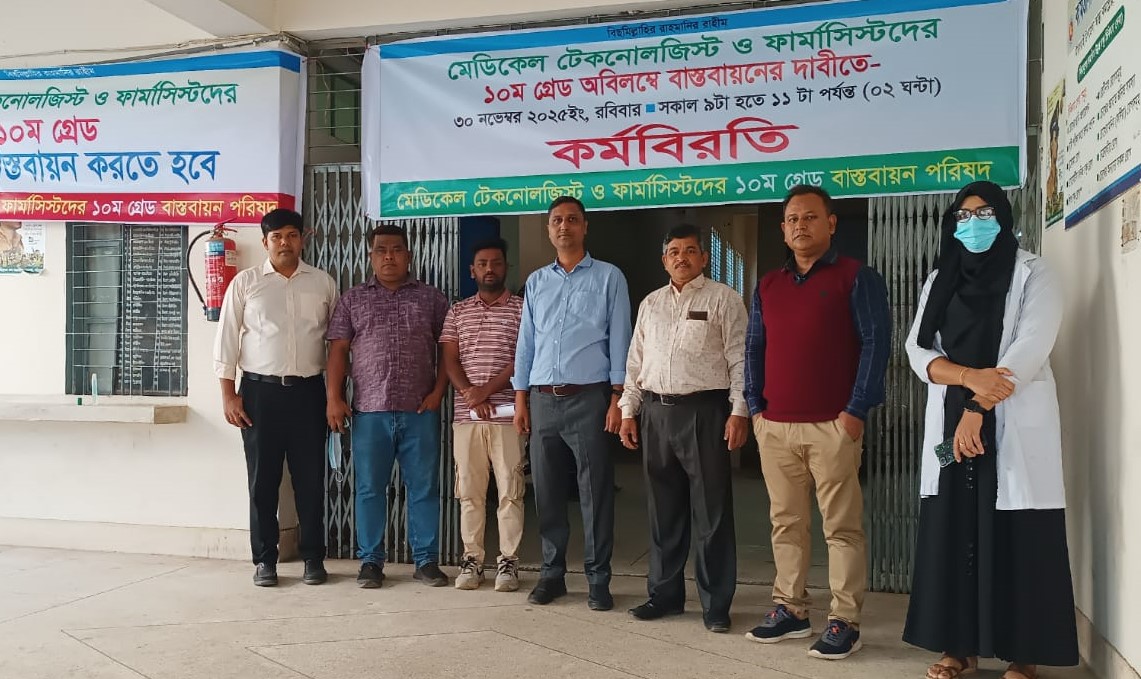 মীরসরাইয়ে ১০ম গ্রেড বাস্তবায়নের দাবিতে কর্মবিরতিতে মেডিকেল টেকনোলজিস্ট ও ফার্মাসিস্টরা
