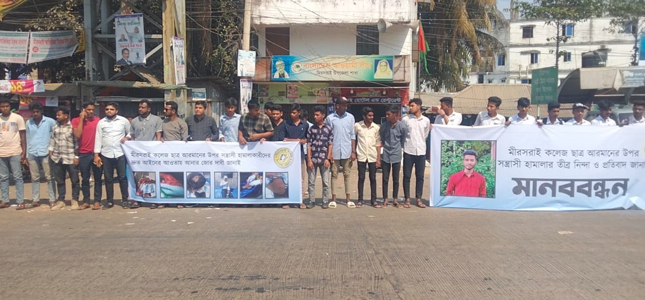 মীরসরাইয়ে হামলার প্রতিবাদে মানববন্ধন
