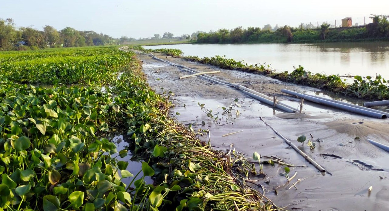 নদীতে বাঁধ দিয়ে দখলের চেষ্টা