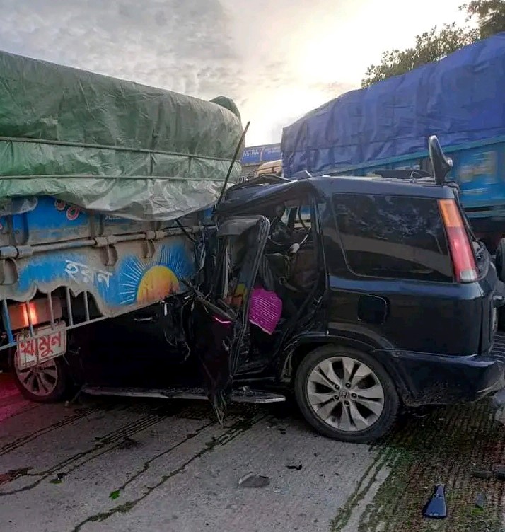 হাদিফকিরহাটে দাঁড়িয়ে থাকা ট্রাকে প্রাইভেটকারের ধাক্কা, নিহত ২