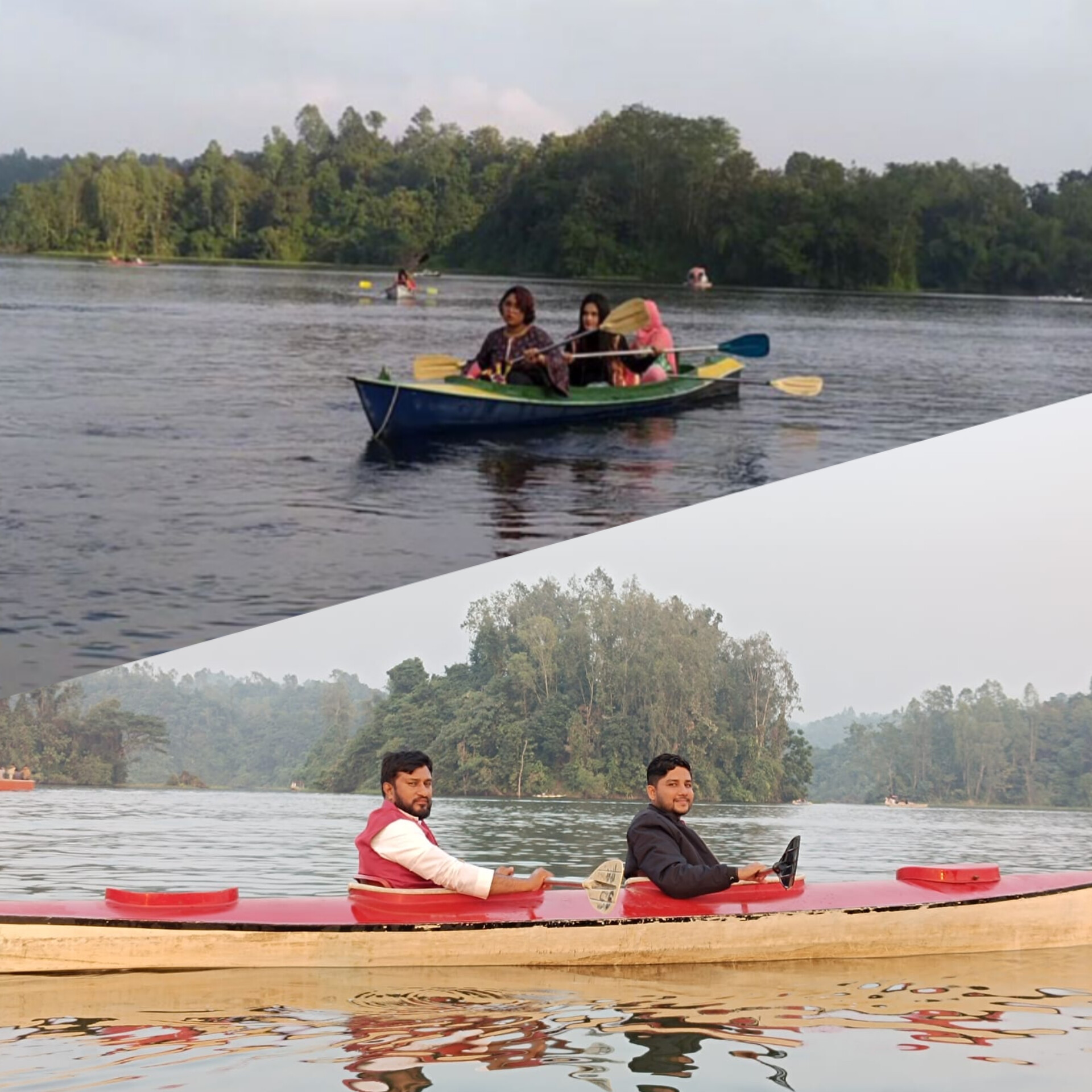 মহামায়া লেকে কায়াকিং করে মুগ্ধ পর্যটকরা