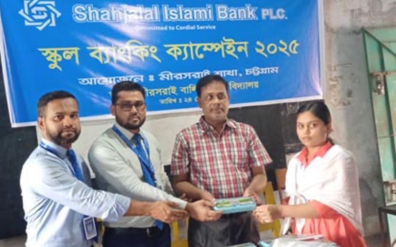 শাহ্জালাল ইসলামী ব্যাংকের উদ্যোগে স্কুল ব্যাংকিং ক্যাম্পেইন ও শিক্ষা সামগ্রী বিতরণ